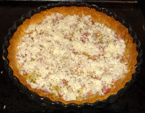 I used a 27 cm (11″) pie shape, but next time I will use a smaller one (24 cm/9″ or even less) to make the quiche higher and thus get a higer ratio of custard to crust.