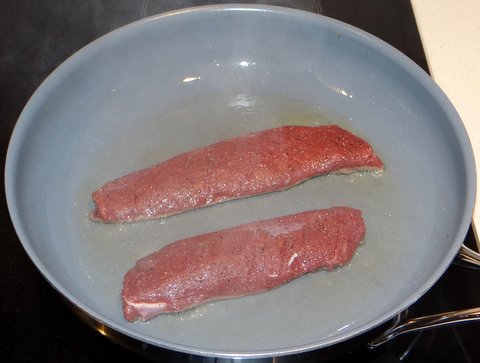 Pat the hare loins dry with paper towels, and rub with salt and freshly ground pepper on all sides.