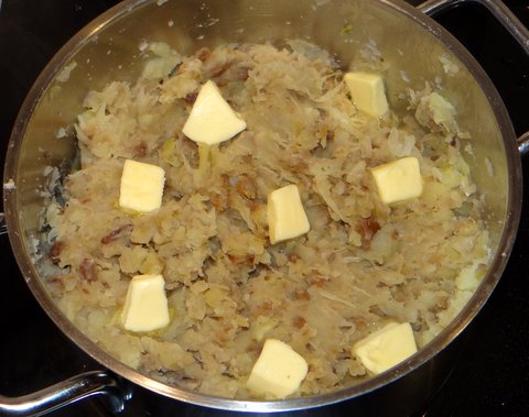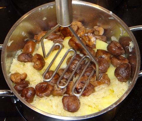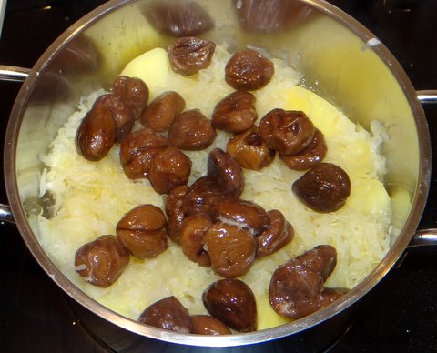 Meanwhile, boil the sauerkraut and the potatoes for 25 minutes in salted water.
