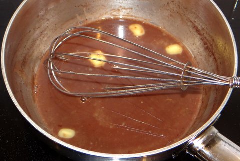 Bring it to a boil and whisk in cold small pieces of butter until the sauce is thicker and shiny (this is called ‘mounting with butter’).