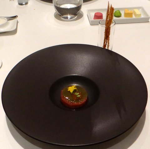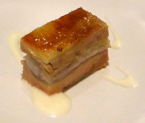 Next was this little tart with apple and foie gras, much much better than a similar dish we got at l’Astrance in Paris last month.