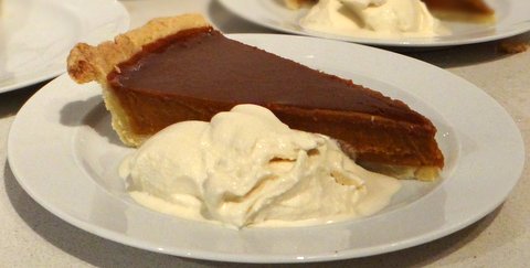 Since I was doing a Thanksgiving-themed dessert and pumpkin pairs well with maple syrup, I decided to serve homemade maple ice cream with my first pumpkin pie. I saw a very straightforward recipe for this on Serious Eats and it turned out great with a very deep maple flavor. It also paired well with the pumpkin pie.