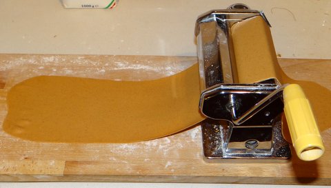 I used the pasta machine to roll out the dough very thin, using the same method as for making fresh pasta. This includes folding and passing the dough through the widest setting a few times.