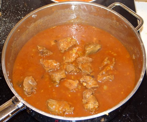 Cover, leaving the lid slightly askew. Lower the heat to a mere simmer, and simmer for 1 to 1 1/2 hours, stirring occasionally during the cooking.