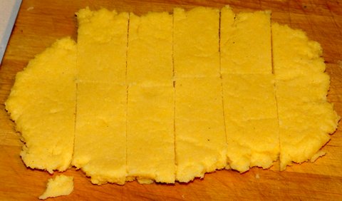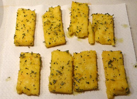 It wasn’t dry at all. I only fried it briefly since the polenta was already cooked.