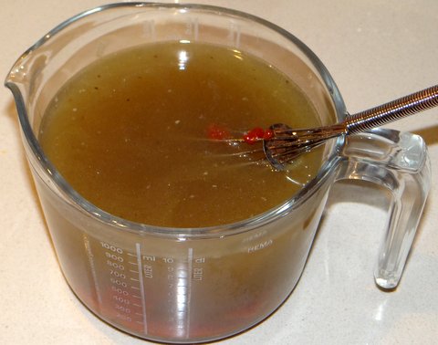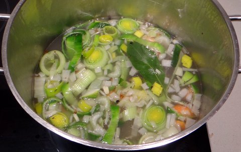Strain out the solids and sieve the stock with a fine sieve.