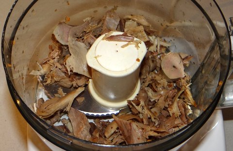 Meanwhile, put the duck meat into the food processor.