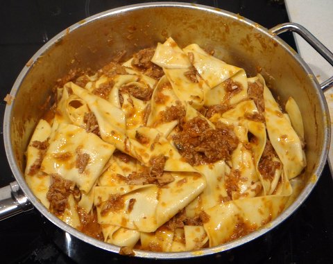 Toss the pappardelle with the duck sauce.