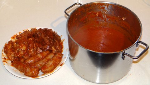 Start by taking the meat out of the sauce: pork ribs, beef chuck or pork shoulder, and pork sausages.
