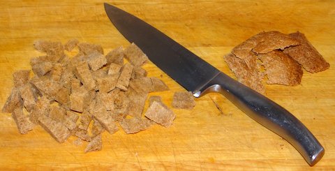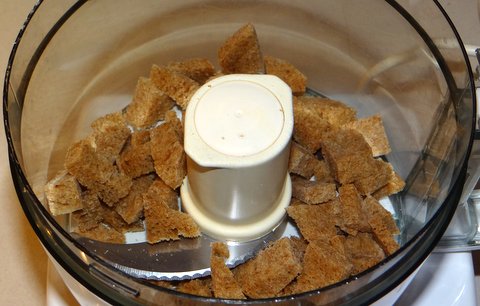 Cut the crust of the stale bread and cut the the bread into pieces.
