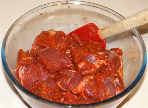 Combine the meat and the paprika mix and stir to coat the meat evenly.