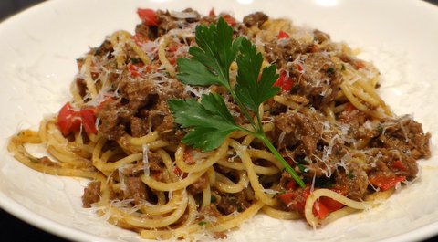Spaghettini with Venison and Bell Pepper Ragù (Spaghettini al Cervo e Peperoni)