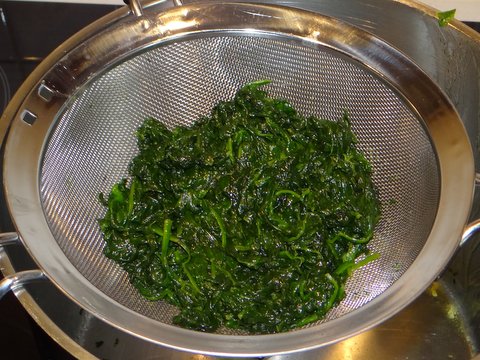 Discard the garlic. Let the spinach drain very well.
