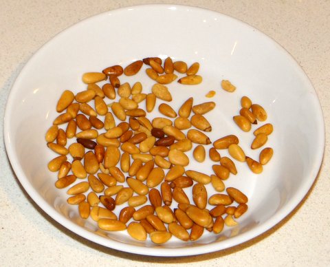 Meanwhile, toast the pine nuts in the oven at 180C/350F for 5-10 minutes.