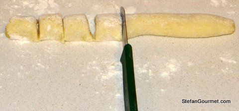 Put the gnocchi on a floured surface and repeat until you have used up all of the dough.
