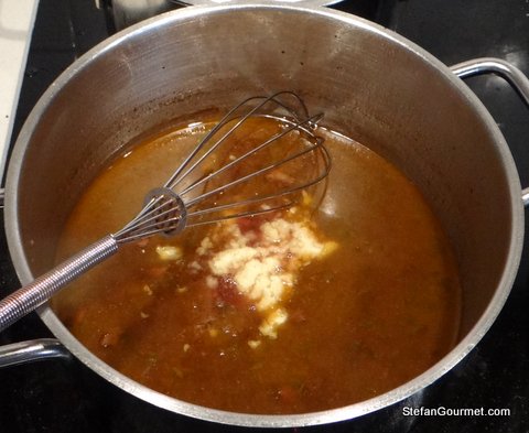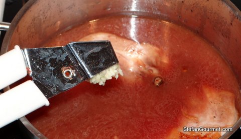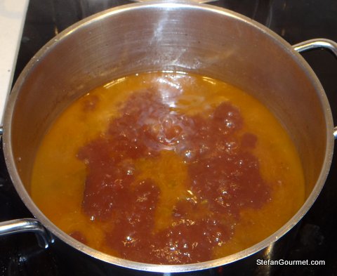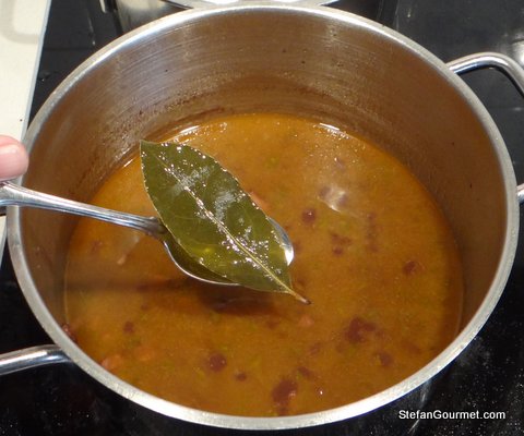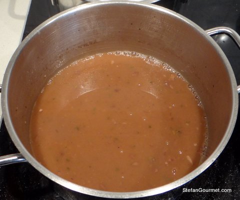 Bring the sauce to a boil and reduce it to about 300 ml (1 1/4 cup). Taste and adjust the seasoning with salt and freshly ground black pepper.