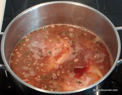 Check whether the chicken is tender (with a fork). Take out the chicken and set it aside.