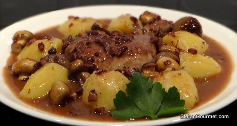 I’m familiar with this recipe, Stefan, as I am with that cookbook. Both are very good and yours would certainly make Julia proud. Speaking of her, I got an unexpected chuckle as I was gazing at your photos and reading their captions. When I came upon the sautéing mushrooms, I could almost hear Julia’s voice warning us not to “crowd the mushrooms!”. You want them to “brown not steam.” Yes, I watch her whenever one of her cooking shows is broadcast on television. And always with a smile.