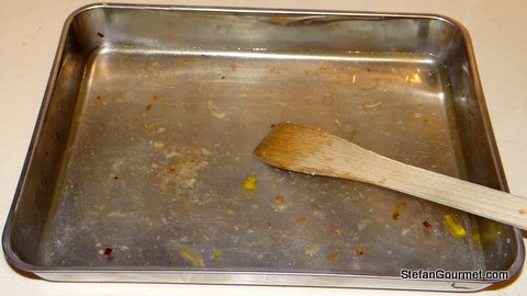 Scrape the bottom of the oven dish with a spatula to get all the flavor in.