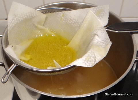 Finally sieve the stock with a cheese cloth or kitchen paper.