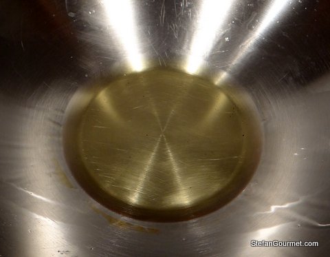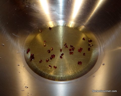 Remove the sichuan peppercorns with a slotted spoon before you continue. Now heat the oil over very high heat.