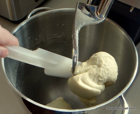 Insert the dough hook and knead for 10 minutes or until it is wrapped around the hook. The dough should now be smooth and elastic.
