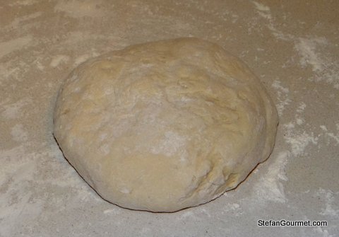 Knead the dough briefly by hand on a floured work surface to expel any surplus air.
