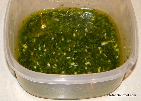On the Adriatic seacoast of Romagna, all kinds of seafood are marinated with parsley, garlic, olive oil, and lemon juice, and then coated with breadcrumbs and grilled or broiled. The marinade gives the seafood a nice flavor, whereas the breadcrumbs help to keep the seafood tender and moist. This recipe is quite similar to ChgoJohn’s recipe for Bacala alla Griglia, which is not surprising since the Marche region where is family comes from is just south of Romagna.