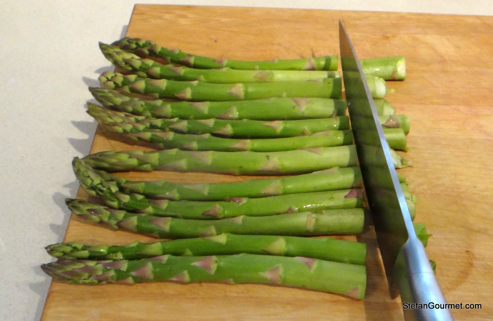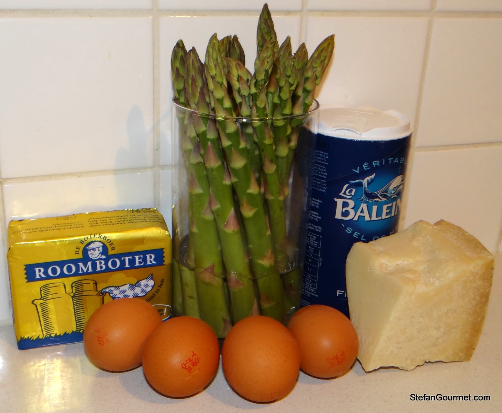 Easter is celebrated in Italy by eating eggs and lamb. As a starter for our Easter dinner, I decided to make a sous-vide version of an Italian antipasto called Asparagi alla Milanese. This is simply green asparagus with a fried egg, melted butter and grated parmigiano reggiano. For the sous-vide version I cooked the asparagus sous-vide at 85C/185F for 15 minutes and the eggs 45 minutes at 64.5C/148F. The resulting egg is like a poached egg, but with a very nice texture. The asparagus are tender but firm to the bite with a nice full flavor. If you don’t have sous-vide equipment, you could of course prepare this in the traditional way by poaching (or indeed frying) the eggs and steaming or boiling the asparagus.
