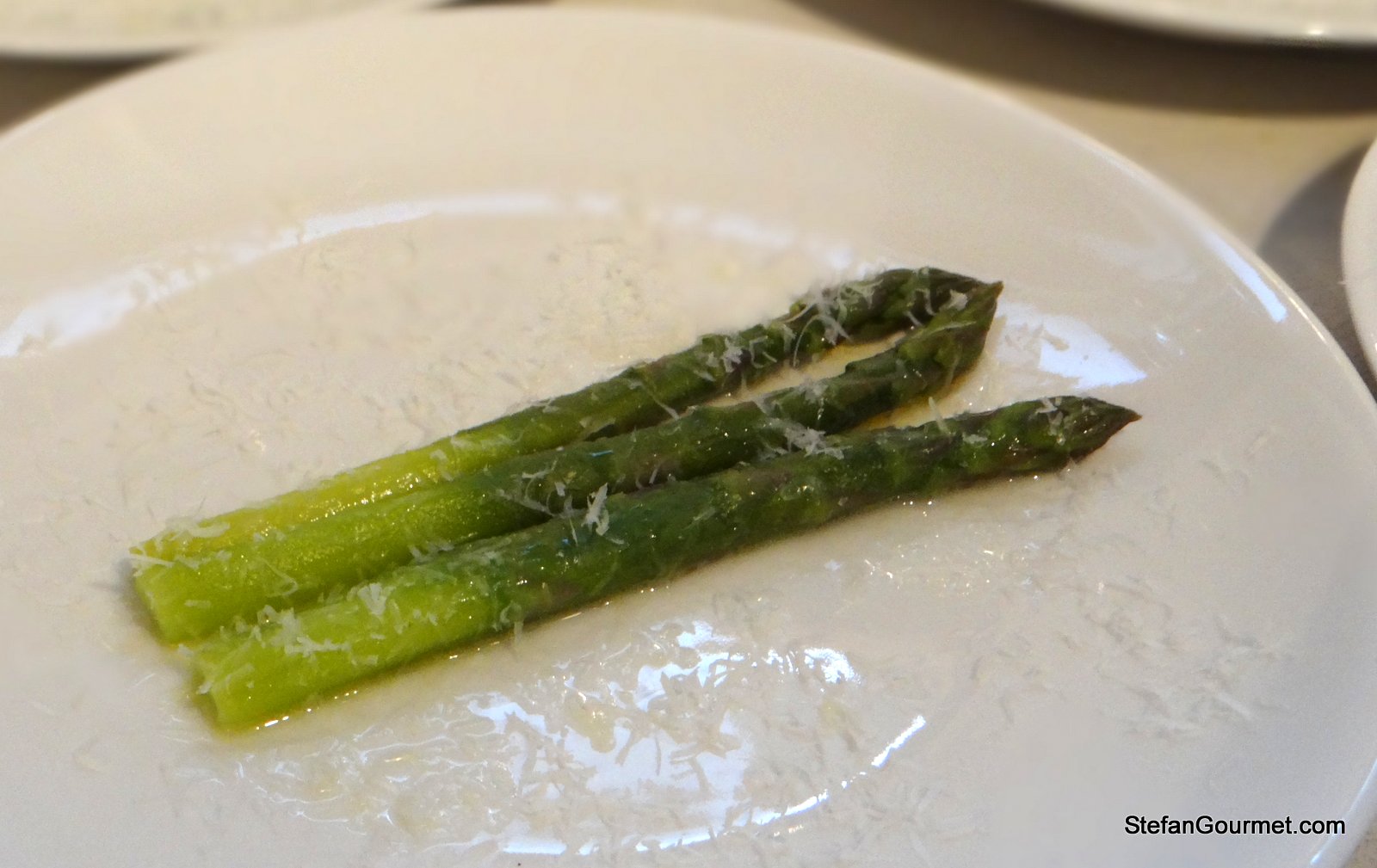 Take the asparagus out of the water bath and remove them from the pouch, reserving the melted butter from the pouch. Arrange 3 asparagus on each plate and spoon over some of the reserved melted butter. Sprinkle generously with freshly grated parmigiano reggiano.