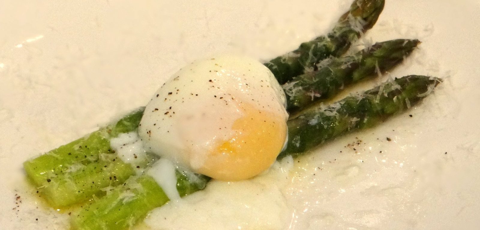 Love asparagus with hollandaise but never thought of a soft boiled egg. Intriguing…
