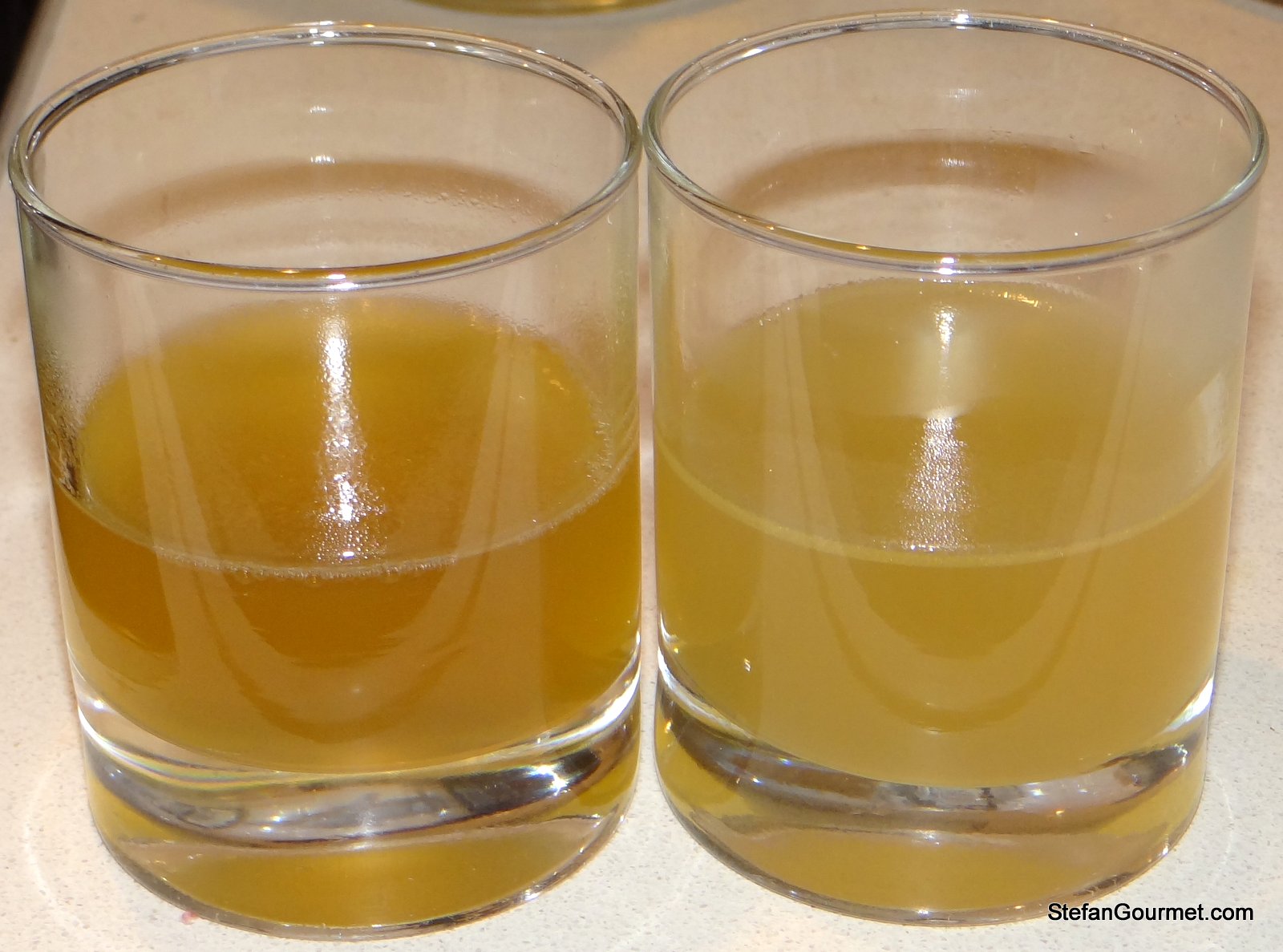 The difference between the pressure cooked chicken stock (on the left-hand side) and the regular chicken stock was clear to be seen, but more importantly to be tasted. The pressure cooked chicken stock  had a significantly deeper and fuller chicken flavor than the regular chicken stock. This was expected after my friends’ advice, but I had not expected the difference to be so significant. The verdict is clear: from now on I will be making stock in the pressure cooker!