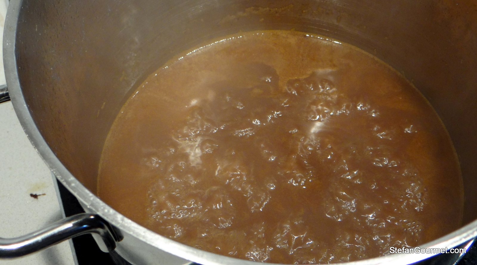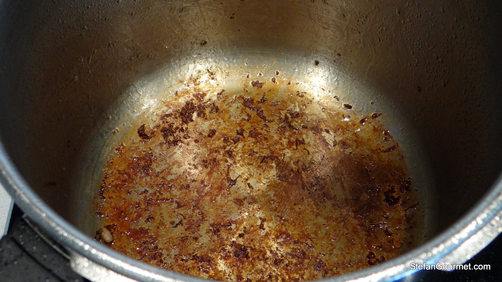 Remove the beef. There should now be a lot of brown flavorful bits attached to the bottom of the pot.