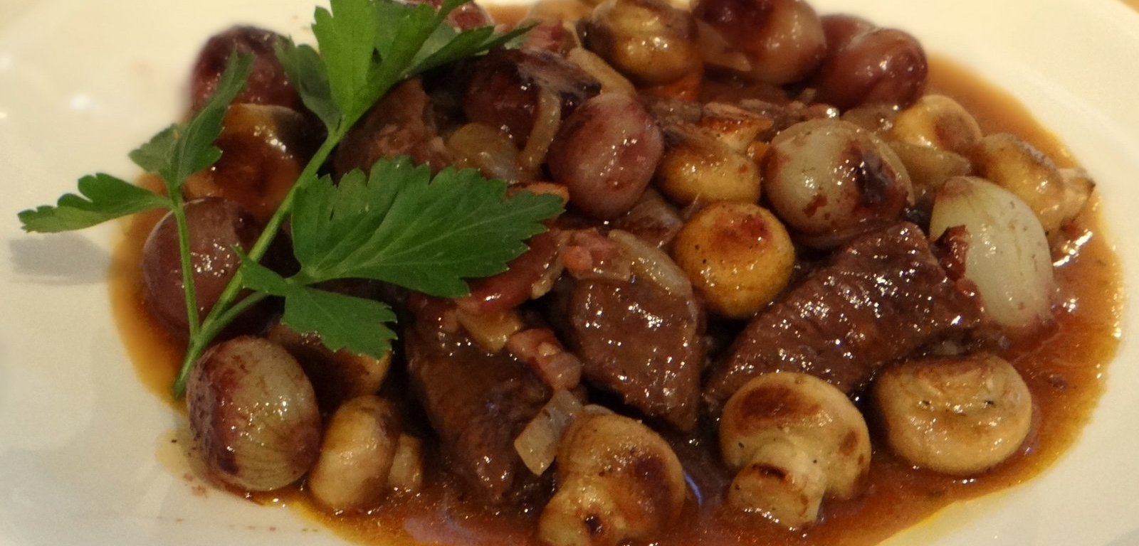 You can use the same recipe to make boeuf bourguignon in a regular casserole, you will just need to simmer it for 3 hours or so instead of pressure cooking for 20 minutes. Here’s what I did.