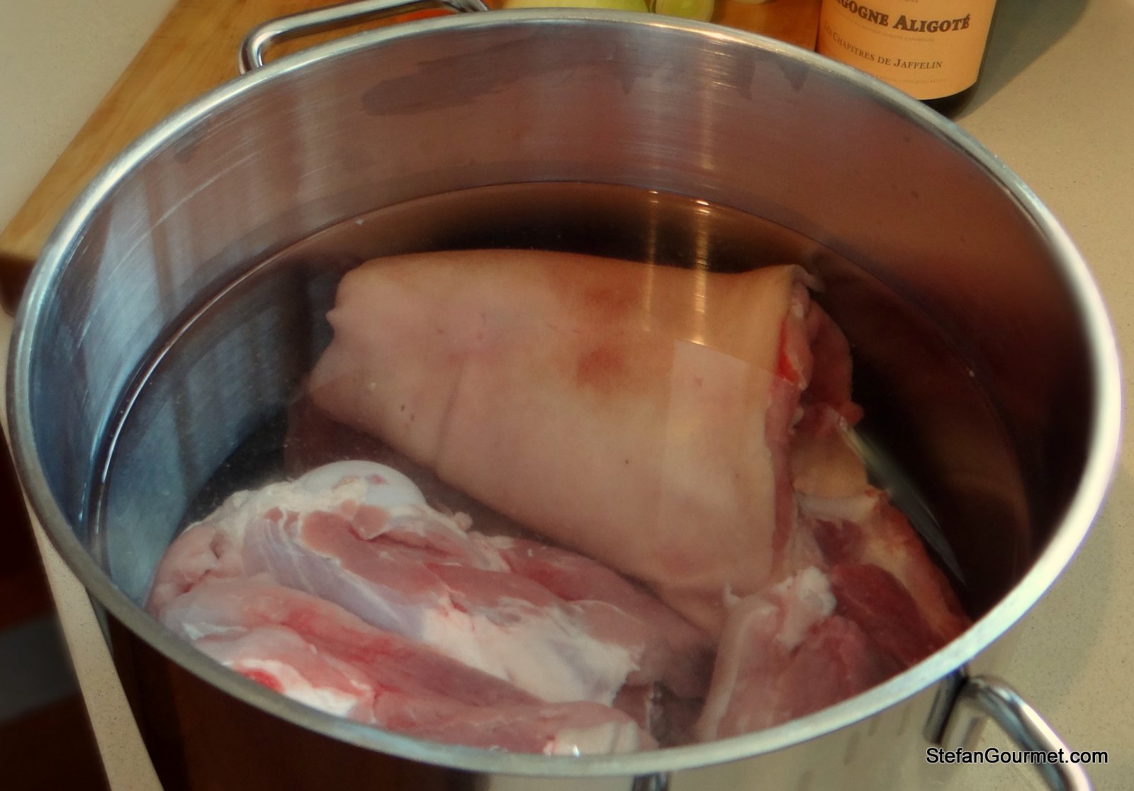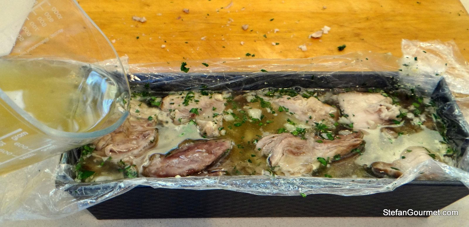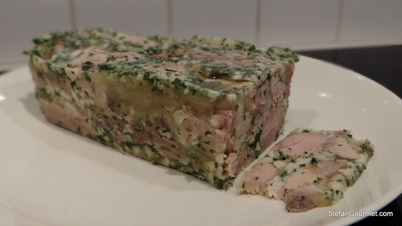 The results look terrific. It’s a shame it didn’t tickle your tastebuds but, to be honest, I can’t get very excited about meat in aspic either. By the way, if you remove the rind and then add it to the stock for the reduction, it should help make it gel quite a bit….