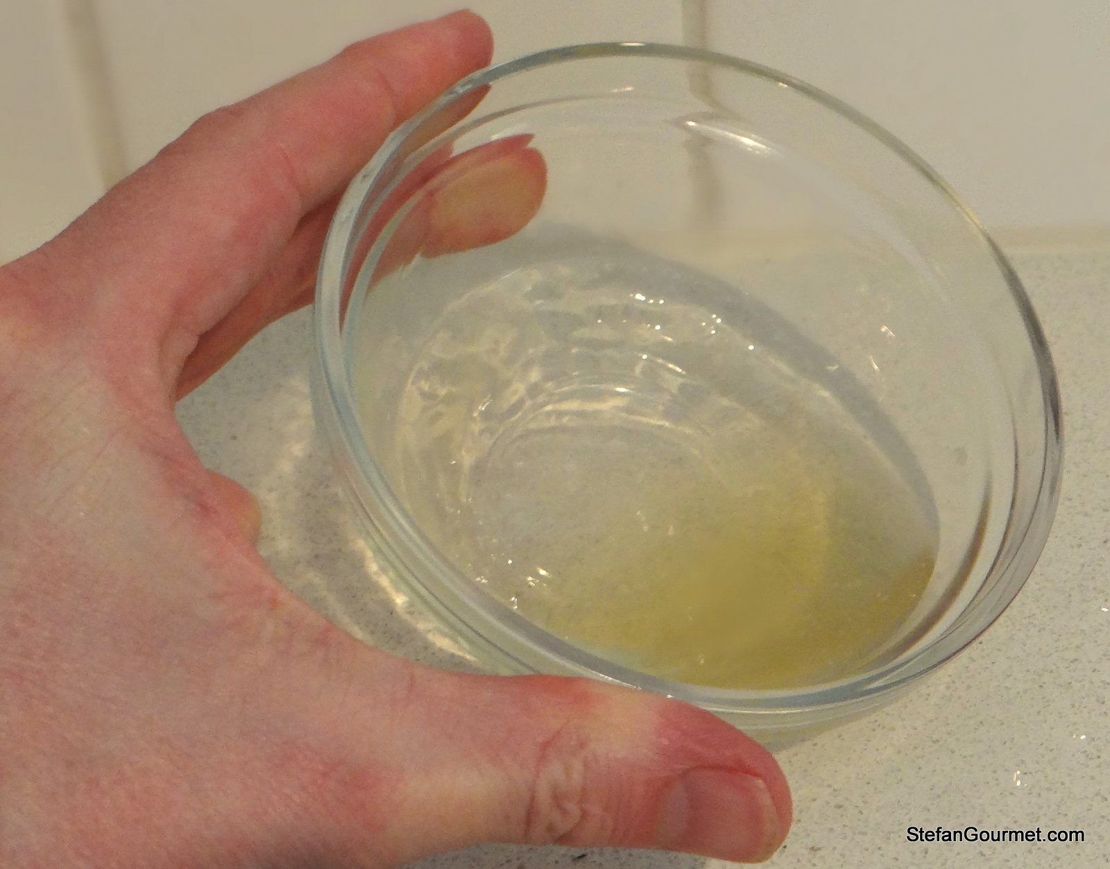 After an hour check whether the stock has set by itself. Since I didn’t use a pork trotter it was not a big surprise that it was only partly set.