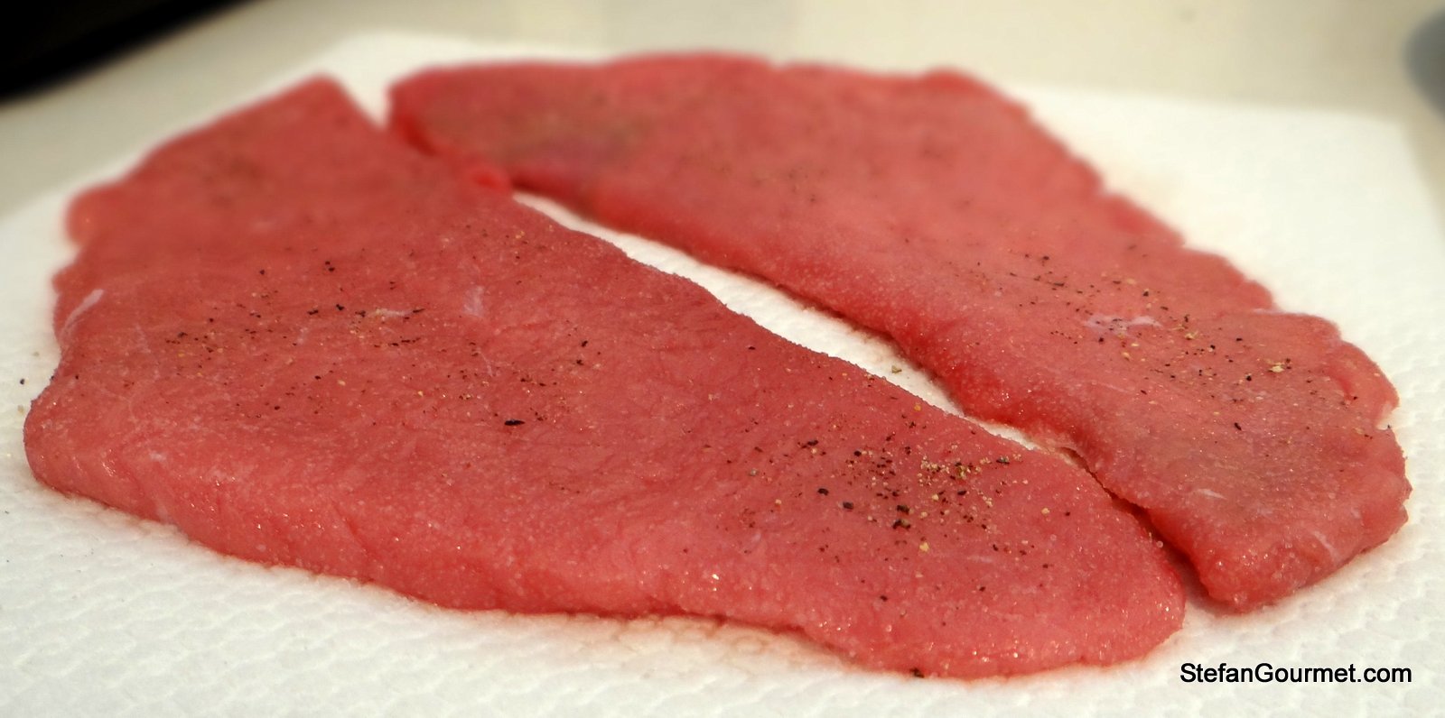 Pat the scaloppine dry with paper towels and season them with salt and freshly ground black pepper on both sides.