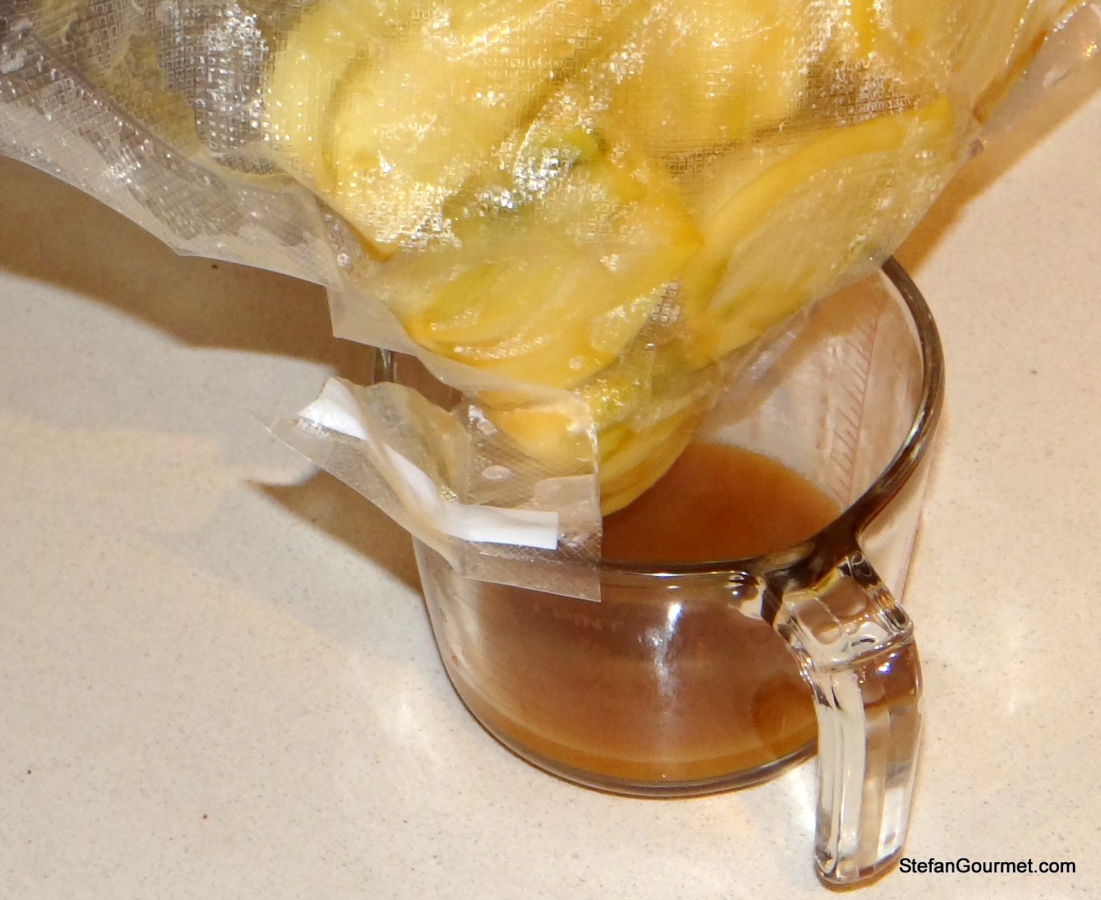 Yes, I took a few pictures of the Ziploc bag before the vacuum, after the vacuum, and while it was simmering with the fennel but stopped after that. So I’ve got the stockpot cooking technique photographed. I don’t have the picture-taking-while-cooking-at-the-same-time method down yet. The camera lens kept fogging up and I was afraid of getting chicken stock on the camera. Or worse, preparing Leica Sous-Vide, hehehe. It is a nice camera; not a pro camera, but not an iPhone either. I can send you the photos if you’d like to see them.
