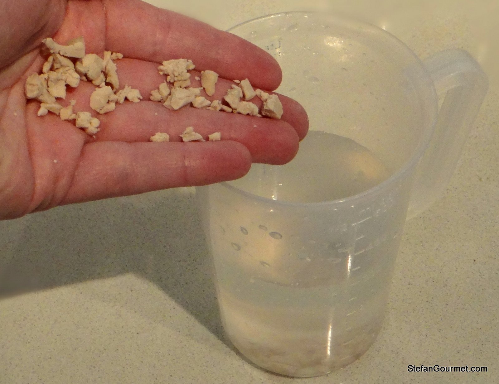 Crumble 6 grams of the yeast and dissolve it in 300 ml of the water.