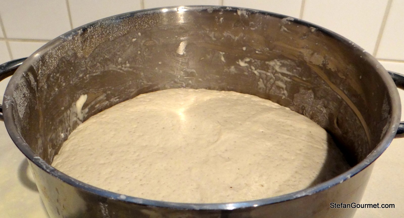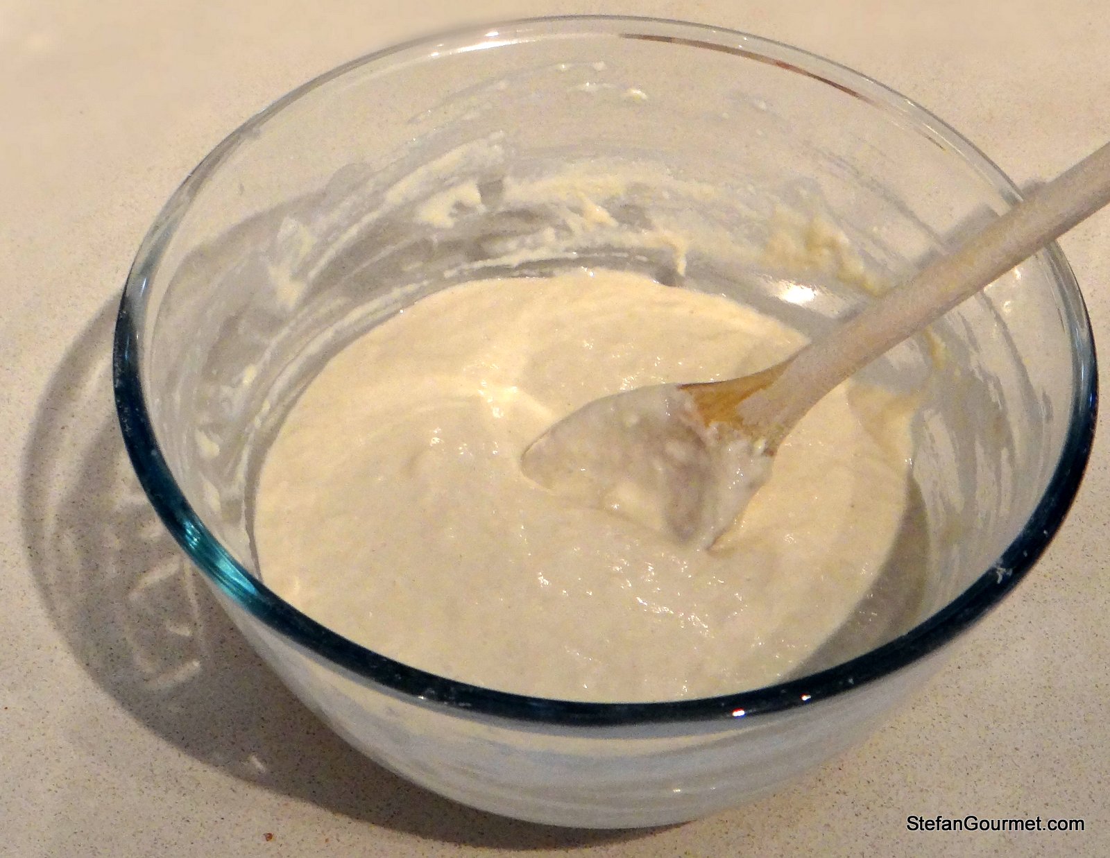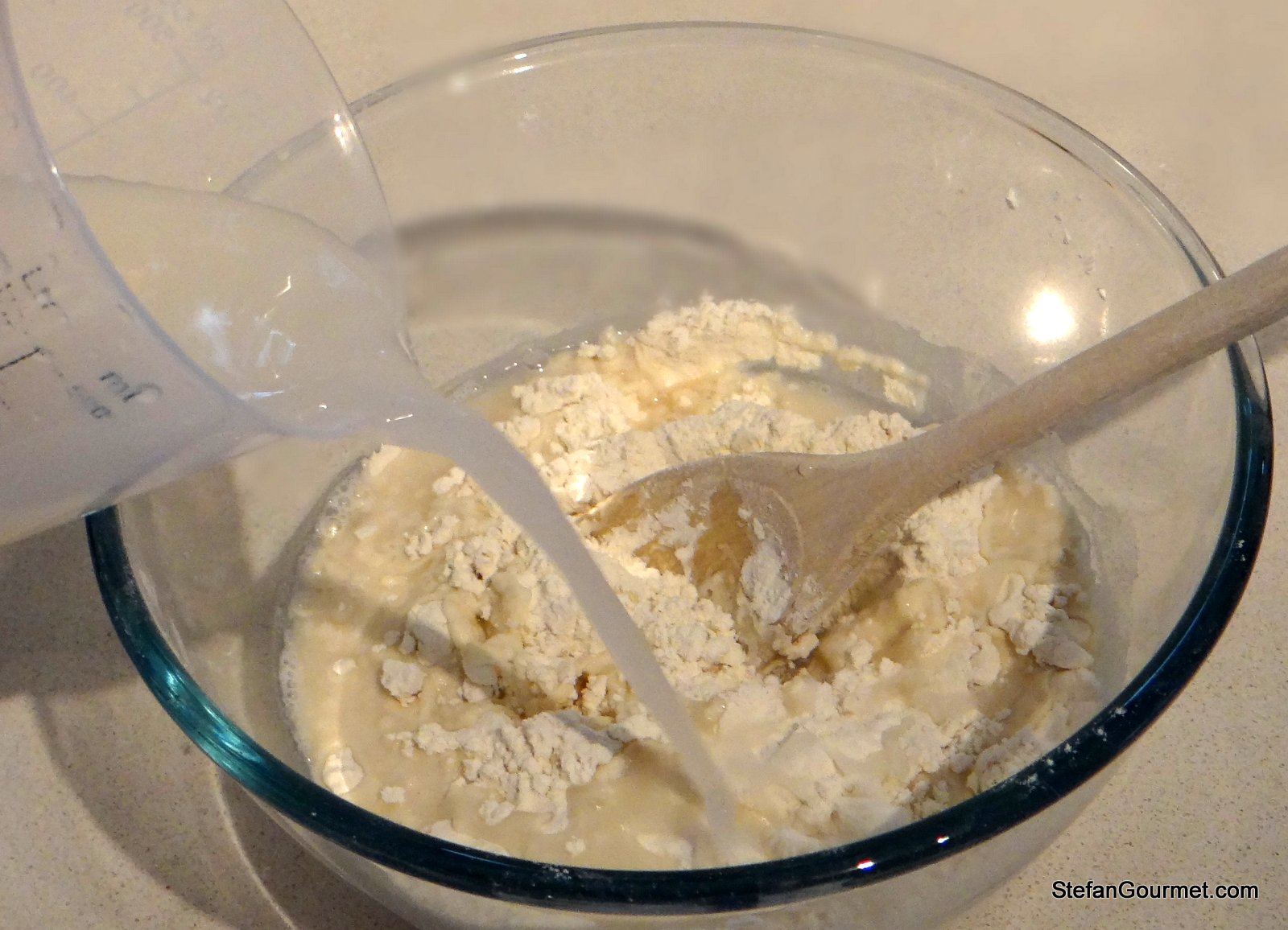 …and the yeast mixture in parts, until you have added all of the flour and all of the yeast mixture.