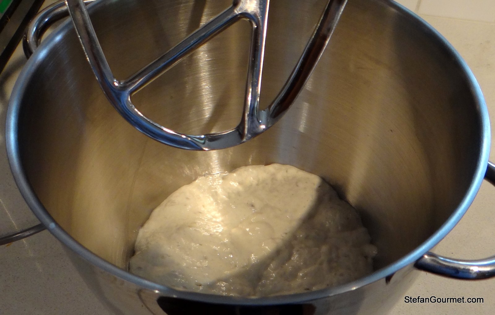 Stir until the dough is homogeneous. You can also do this step in the stand mixer, which is what I will do the next time.