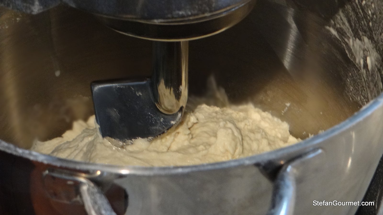 Knead the dough with the dough hook for 5 minutes on medium speed.