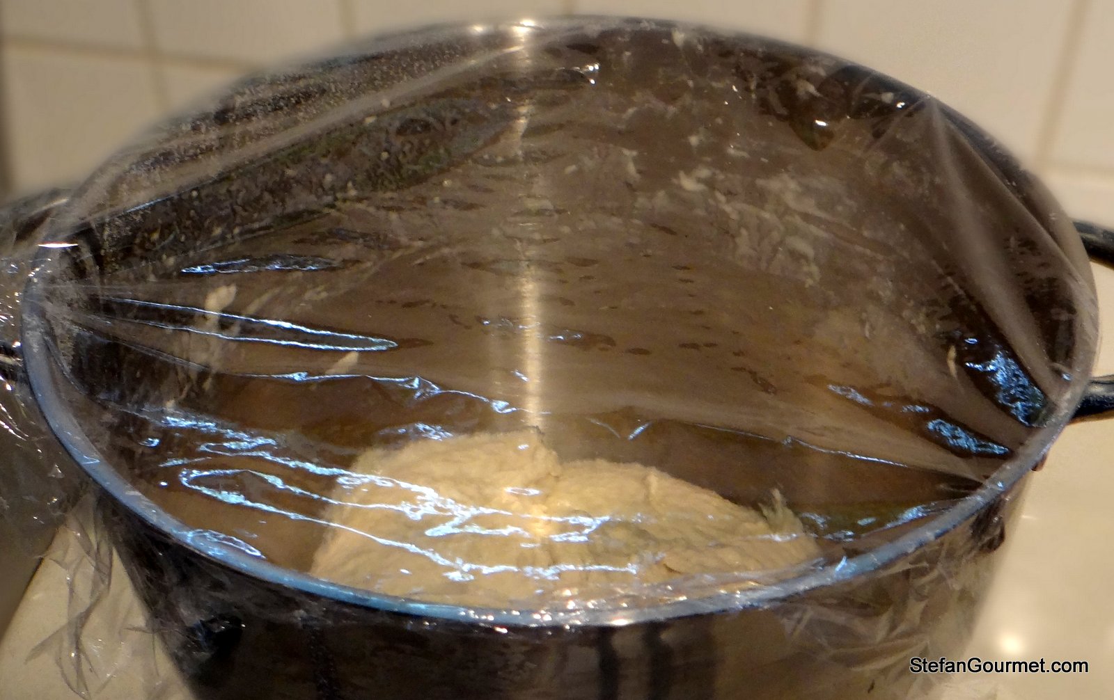 Cover the bowl with plastic wrap and allow to rise for three hours at room temperature.