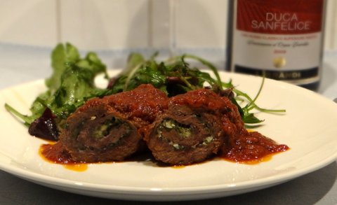 For comparison, this is what the tradionally prepared braciole look like. As you can see, they are well done rather than medium rare.