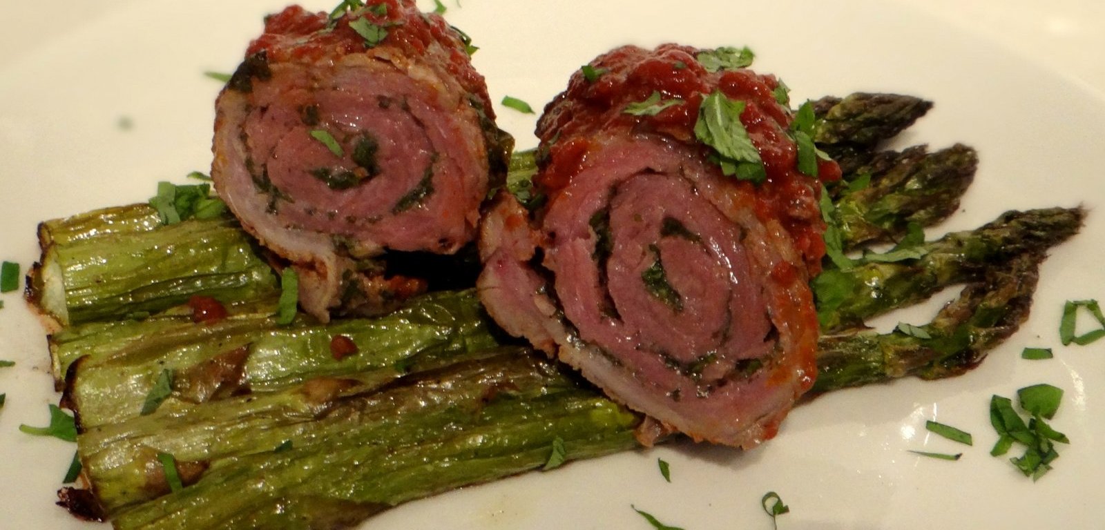 Serve the beef bundles with the sauce. In this case I served them over some green asparagus, roasted in the oven with olive oil, salt, and freshly ground black pepper for 15 minutes at 225C/440F.