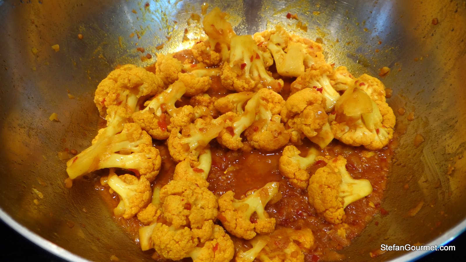 After 20 minutes the cauliflower should be tender and the sauce should be thick. Turn off the heat. You can make this the day before if you like to allow the flavors to develop. Gently reheat when it’s time to serve.
