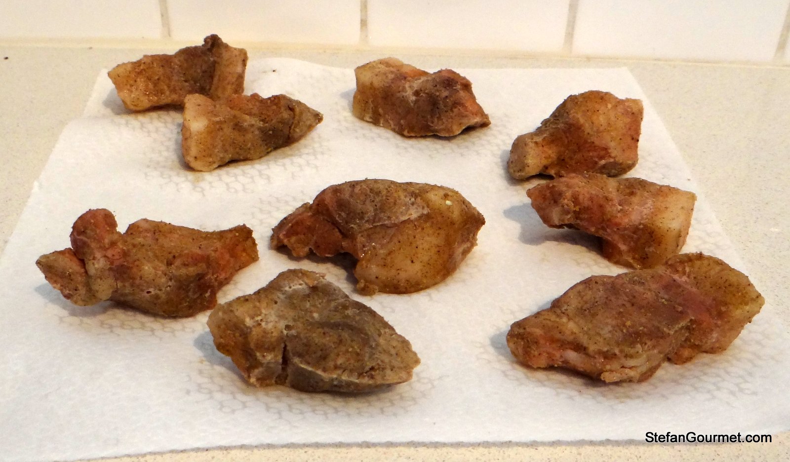 Great idea to chill the cooked pork first. It may also help to sprinkle with baking powder and allow to dry in the refrigerator. Let me know how it turns out.
