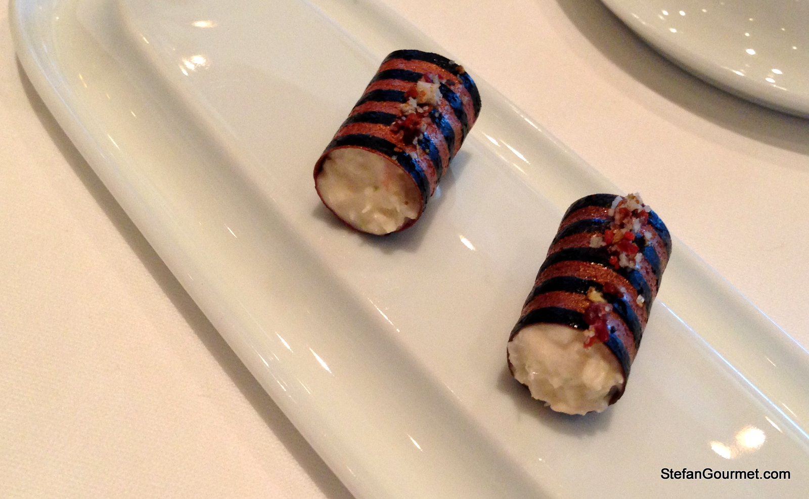 The amuses bouche at Bord’Eau are one of their best features. I don’t remember what was in these crunchy rolls stuffed with Oosterschelde lobster, but I do remember they were absolutely delicious.