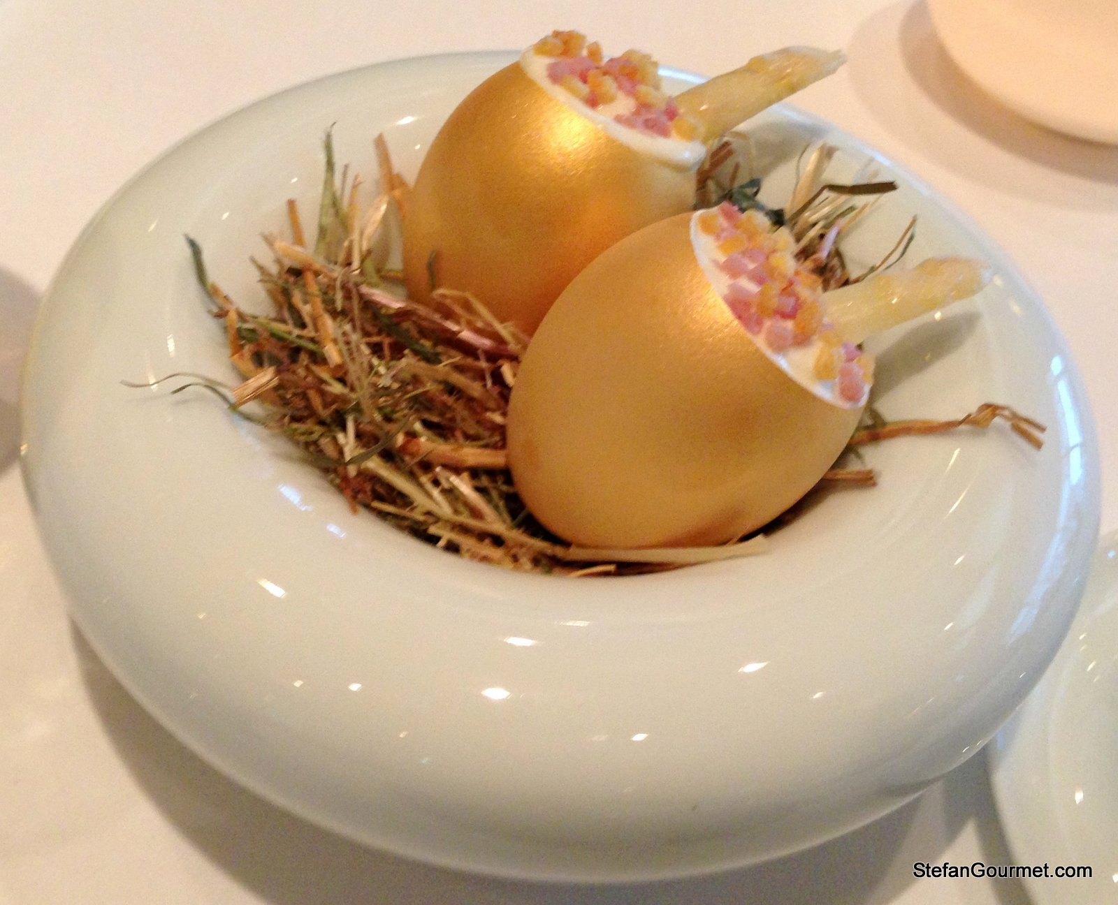 When one has had the good fortune to travel and the ability to visit a lot of the ‘star’ and other fabulousrestaurants, a certain degree of ‘fatigue’ can set in. I have to say this restaurant has so much originality in both food and plating to be very memorable: love the ‘eggs and ham’, that I really have to thank you for taking us along. Hotel de l’Europe has been there for ages: I have stayed 3-4 x literally decades ago, but don’t remember ever eating there . . . Oh, the field of grass looks very Heston Blumenthal 🙂 !