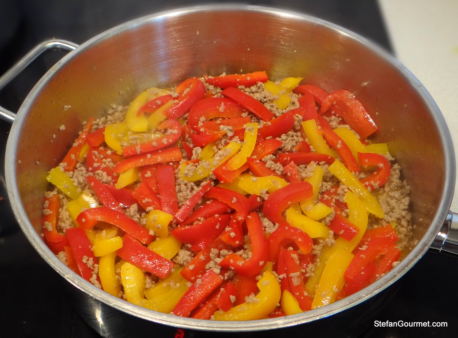 3 red and yellow bell peppers, cut into thin strips